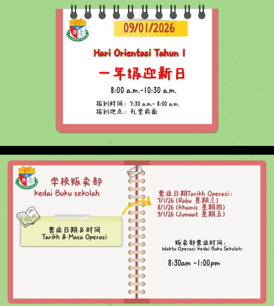[通告]Hari Orientasi Tahun I 一年级迎新日&学极贩卖部kedai Buku sekolah